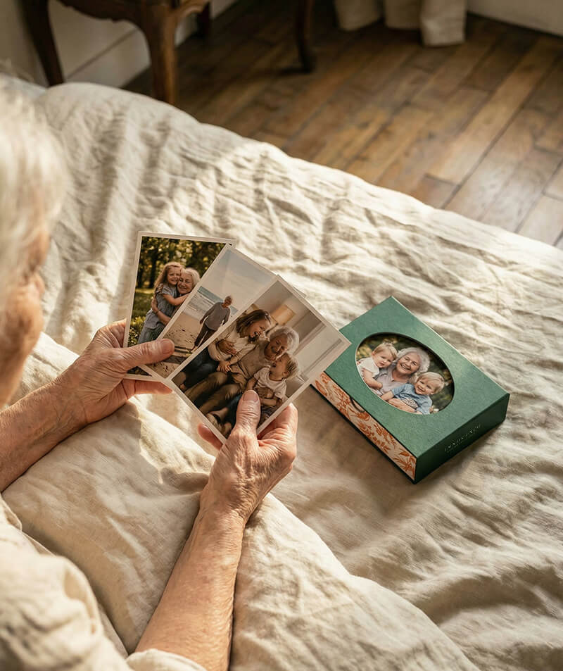 Cette année, offrez un cadeau personnalisé pour la Fête des Grands-Mères : un album photo, des tirages photo premium ou une boîte photo remplie de souvenirs de famille.